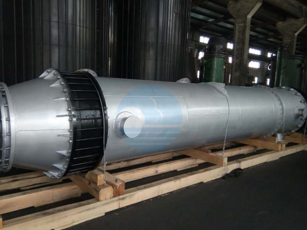 石墨噴淋塔直徑可達到2800mm,設(shè)置多層石墨篩板,筒體內(nèi)壁為石墨材質(zhì),外壁采用鋼制抱圈加強,筒體之間是通過鋼抱圈上焊接半環(huán),將拉桿穿過半環(huán)進行密封,降低了設(shè)備的重量及制造成本,便于發(fā)運安裝;筒壁設(shè)置多層側(cè)噴,形成360度噴淋,保證噴淋效果,可拆卸噴淋頭設(shè)置為石墨材質(zhì),防止了煙氣腐蝕,設(shè)置亞力克材質(zhì)試鏡,設(shè)置石墨液位計套管便于安裝及查看;通過在上蓋板與上封頭之間通過螺桿固定,從而將石墨封頭通過拉桿的作用力與上蓋板固定,增大石墨封頭的強度,即上蓋板對于石墨封頭的補強的強度,降低了石墨封頭的厚度,相對保證了浸漬厚度。